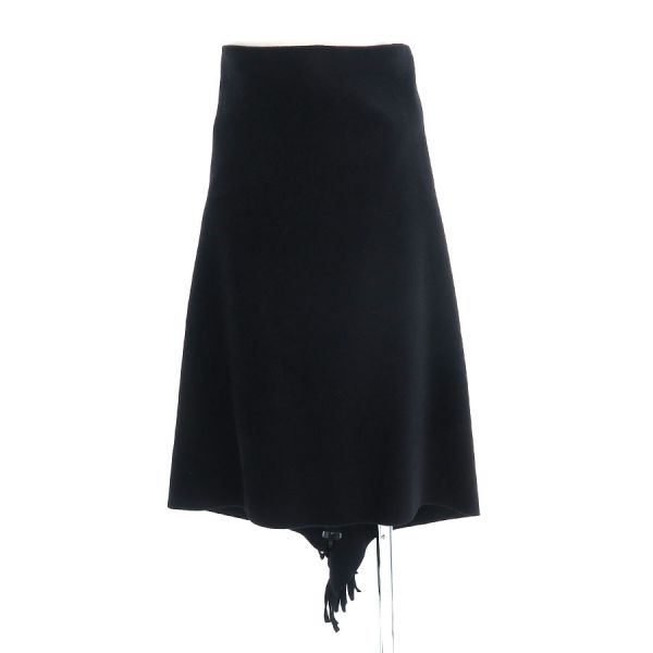 ■採寸後ろ丈65cm 前丈75cm ウエスト70cm H84cm■素材羊毛60% アルパカ40%■コメントバレンシアガから黒のスカートが入荷しました。全体的に起毛感強めのお品物になります。前フリンジ部に糸の飛び出しが多く見られます(切りっぱなしのデザイン)前丈の方が後ろ丈よりも長めのデザインです。お買い得になっていますのでお問い合わせください。