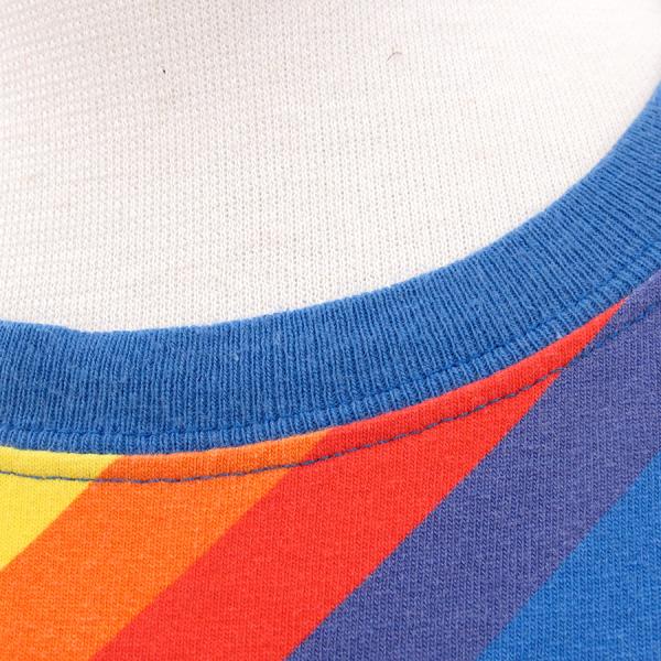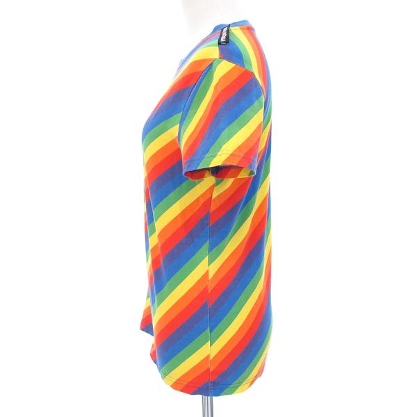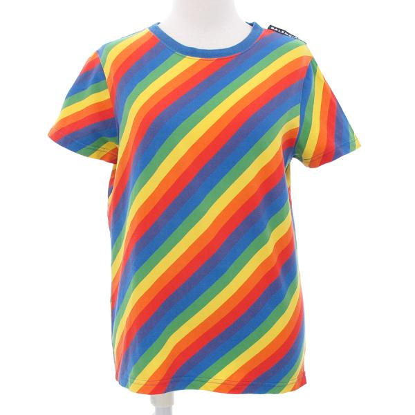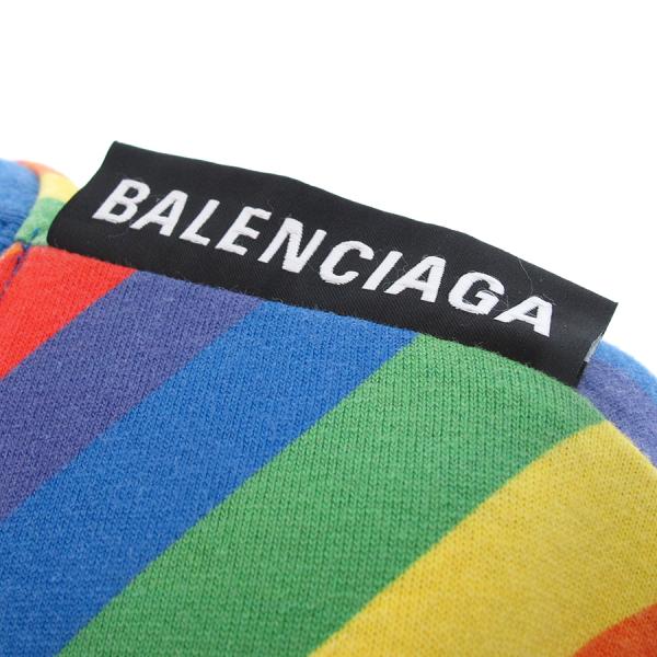 バレンシアガからレインボーカラーのTシャツトップスが入荷しました。全体的に起毛感が見られ着用は見られます。襟の淵に起毛感強めに見受けられ多少色落ちも見られますのでBランクでのご案内ですが伸縮性もあり着易そうですよ。お気軽にお問い合わせください。