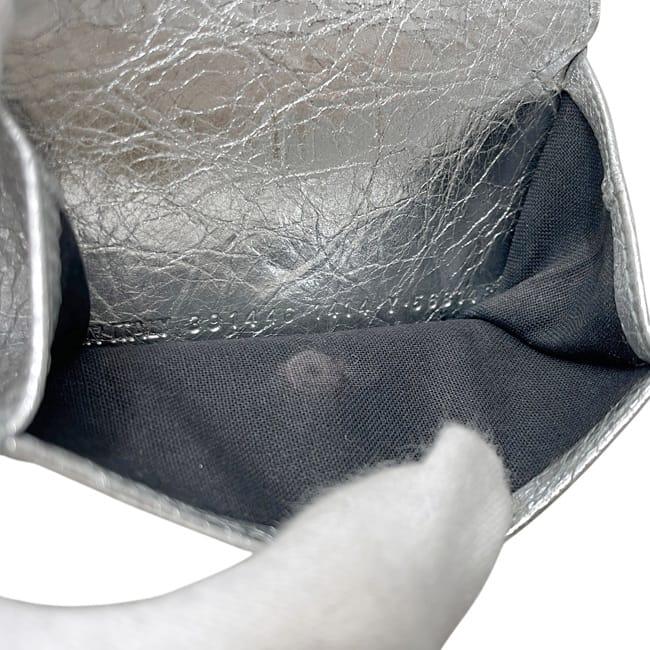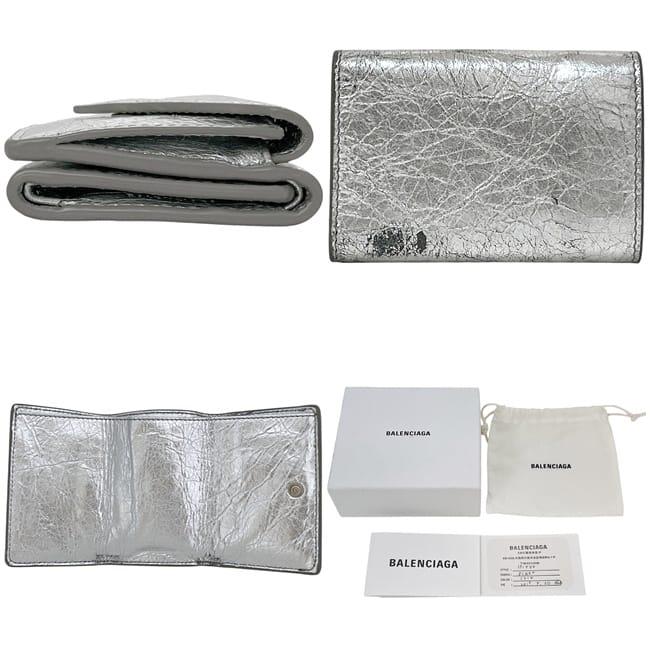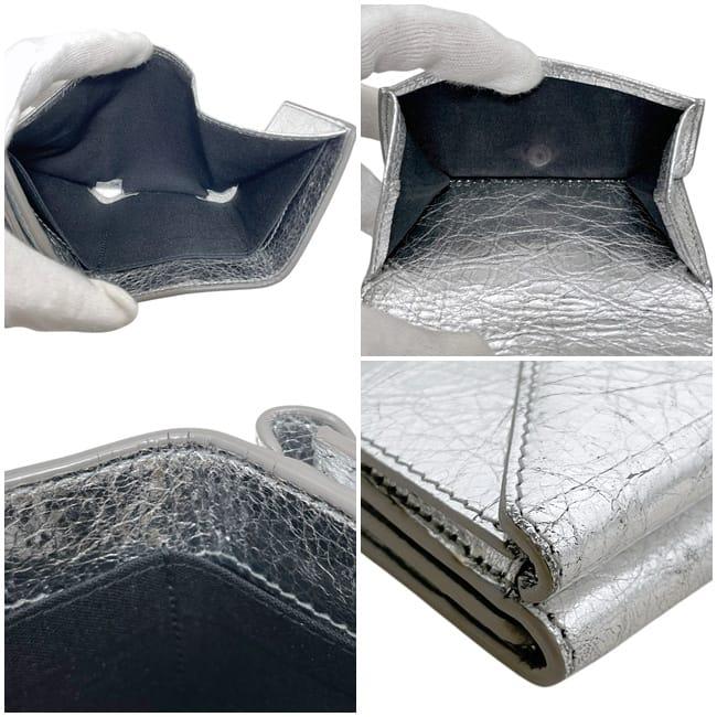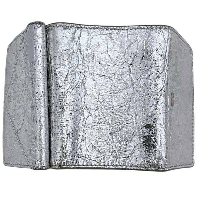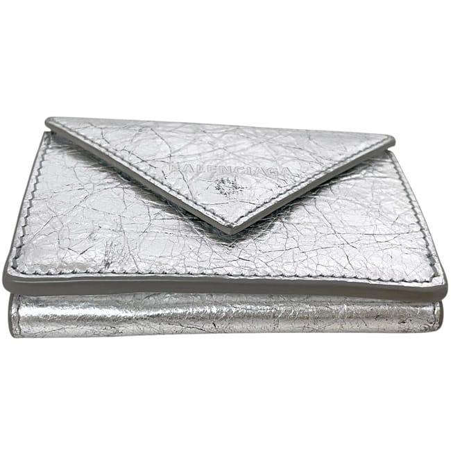 ☆---- 商品について ----☆バレンシアガ 三つ折り 財布 ペーパー ウォレット f-25152 シルバー 391446 美品 レザー 中古 1414Y 568148 BALENCIAGA ホック 銀 折り財布 コンパクト 箱付き シンプル ワンカラー レディース メンズ 男女兼用 定番 人気 小銭入れ有 ブランド 本物 鑑定済み