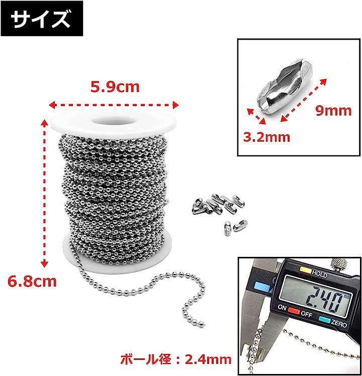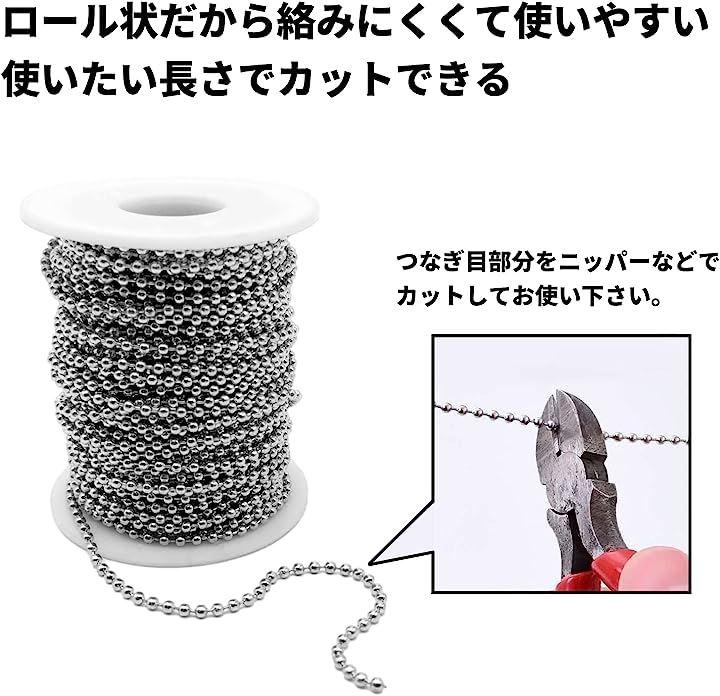 大容量20m。カットされていないボールチェーンはロール状だから絡みにくくて使いやすく、使いたい長さでカットすることができて便利。つなぎ目部分をニッパーなどでカットしてお使い下さい。