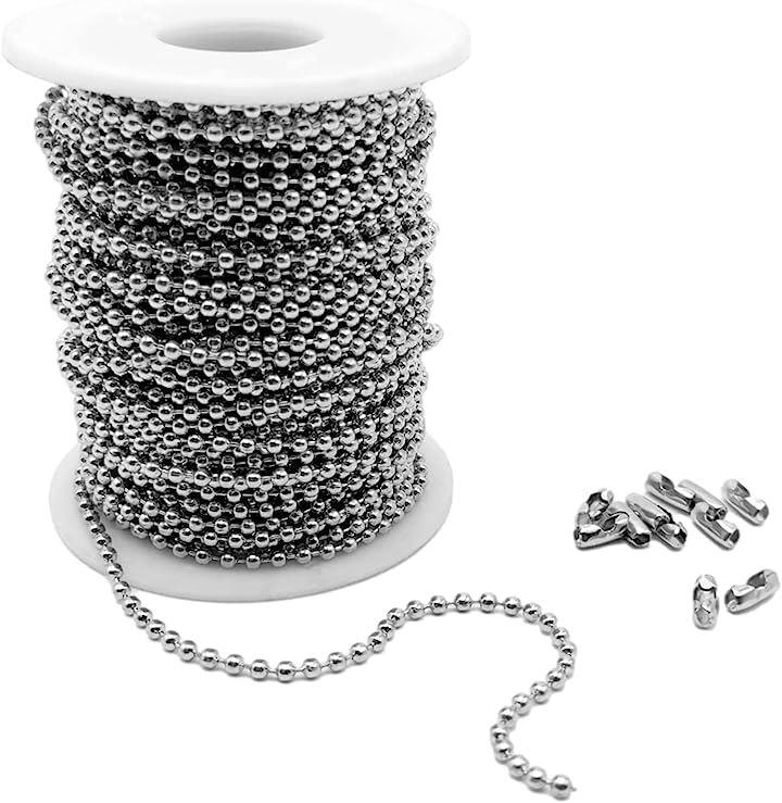 ネックレスやキーホルダーなどの切れてしまったチェーンの交換や、オリジナルアクセサリー作りにピッタリなハンドメイド素材のボールチェーン20mとコネクター50個のセットです。