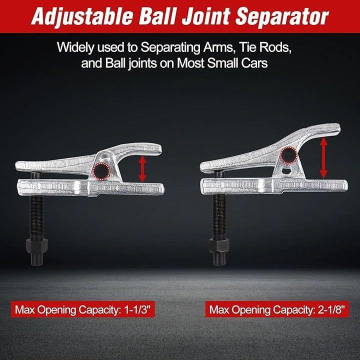 1-1/3インチから2-1/8インチの調整可能な開口範囲を備えたこの堅牢なセパレータは、ボールジョイント、タイロッド、および車や小型トラックからの分離アームを効率的に取り外します。