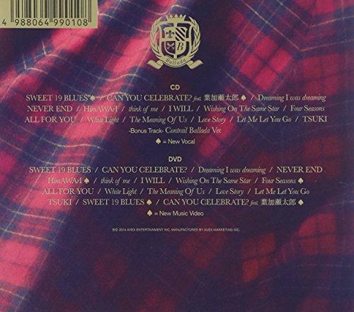 「Ballada」特設サイトはコチラ http://ballada.dimension-point.jp 初回特典(封入):チェンジングジャケット 。 邦楽女性ソロアーティスト 歴代1位のシングル売上を記録している「CAN YOU CELEBRATE?」(1997年) 同じく代表曲と言える「SWEET 19 BLUES」(1996年)、フジテレビ系月9ドラマ 「私が恋愛できない理由」主題歌で配信350万ダウンロードを記録した「Love Story」(2011年)など、バラード人気投票によって選ばれた上位15曲を収録した自身初のバラードベストアルバム。 「CAN YOU CELEBRATE?」「SWEET 19 BLUES」は新たにヴォーカルをレコーディング。 さらに、「CAN YOU CELEBRATE?」は、世界で活躍するヴァイオリニスト"葉加瀬太郎" が参加し豪華な ニューバージョンにリメイク。 上位15 曲の音源に加え、ボーナストラックには未発表音源「Contrail Ballada Ver.」を収録。 CD+DVD 盤とCD+Blu-ray 盤には、「SWEET 19 BLUES」「CAN YOU CELEBRATE? feat. 葉加瀬太郎」 の新ミュージックビデオを収録し、さらにミュージックビデオが存在しなかった「HimAWArI」「Four Seasons」も新たに制作され全17 曲のミュージックビデオを収録!! 【CD収録内容】 1.SWEET 19 BLUES ※ 7th Single SWEET 19 BLUES」(1996.8.21 Release) トリプルミリオンを記録したオリジナルアルバム『SWEET 19 BLUES』からのリカットシングルとしてリリースされ19歳のリアルな心情を描いた歌詞が多くの若者の共感を呼び、安室奈美恵の代表作とも言える一曲に。 アルバム『Ballada』には、トラックは当時のままに、新たなヴォーカルレコーディングを行ったニューバージョンを収録。 2.CAN YOU CELEBRATE? feat. 葉加瀬太郎 ※ 9th Single「CAN YOU CELEBRATE?」(1997.2.19 Release) フジテレビ系月9ドラマ『バージンロード』の主題歌となり、ダブルミリオンを突破。1997年のオリコン年間シングルチャ