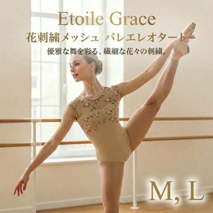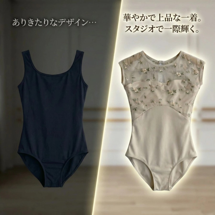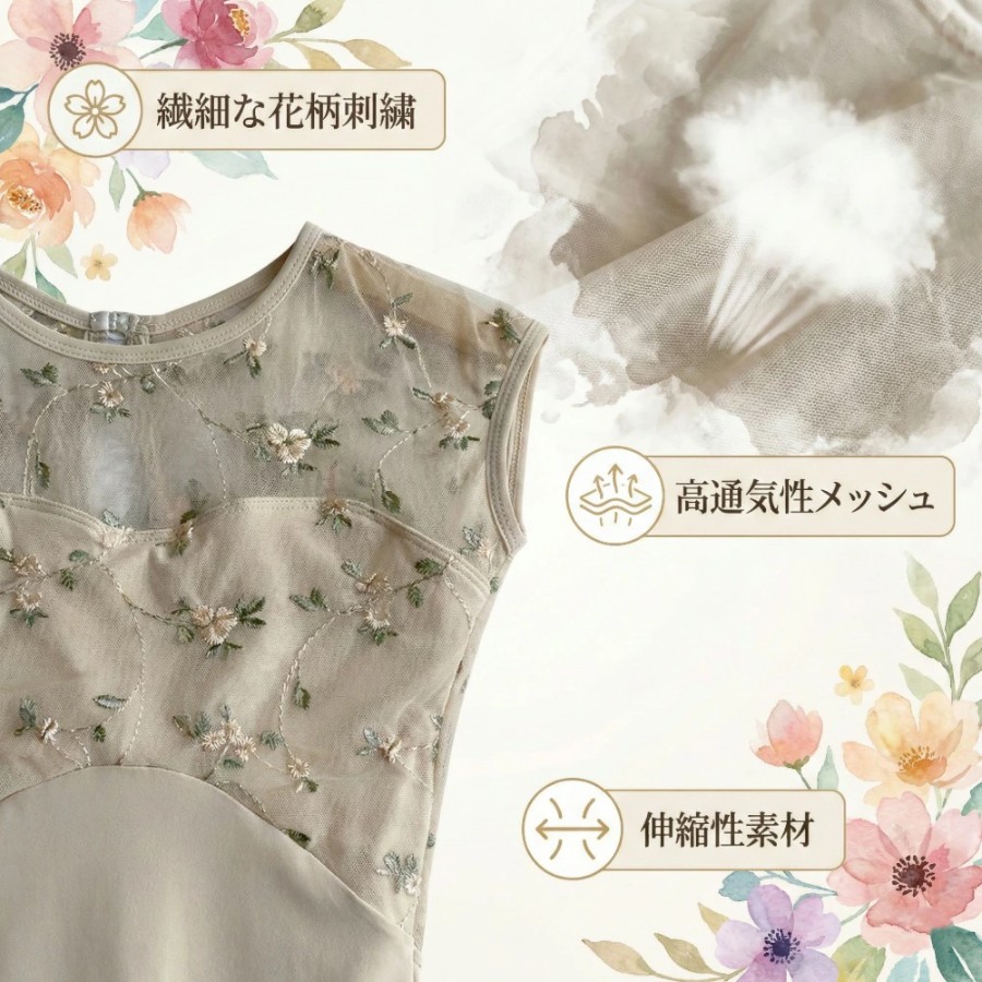 レオタード:ベージュ系(花柄刺繍メッシュ)