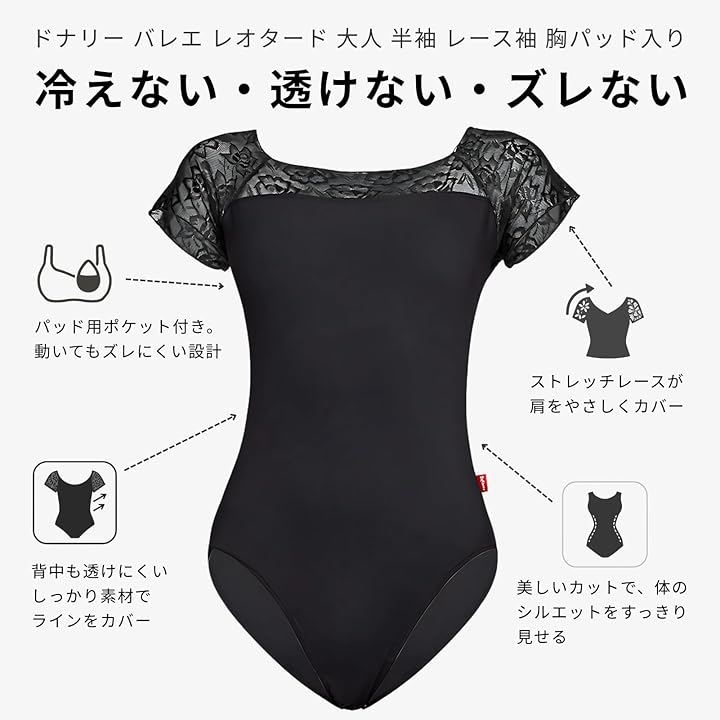 Ballet Leotard for Adults, Short Sleeves, Cooling, Lace Sleeves, Chest Pads, Simple and Elegant Practice Wear, Dancewear, Recital Costume