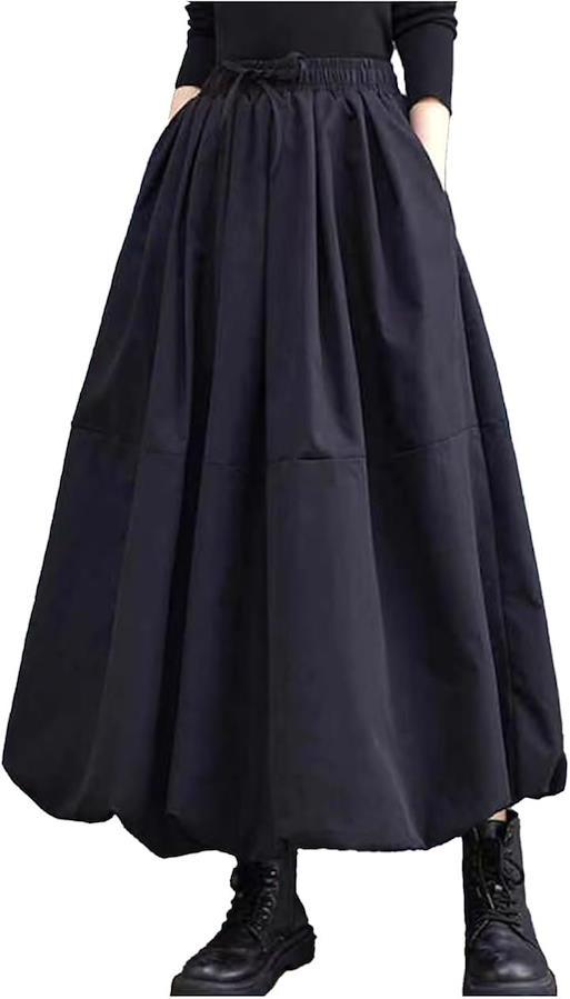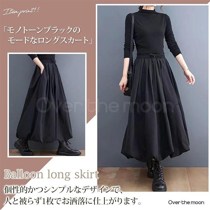 モノトーンブラックのバルーンデザインがモードなロングスカート
