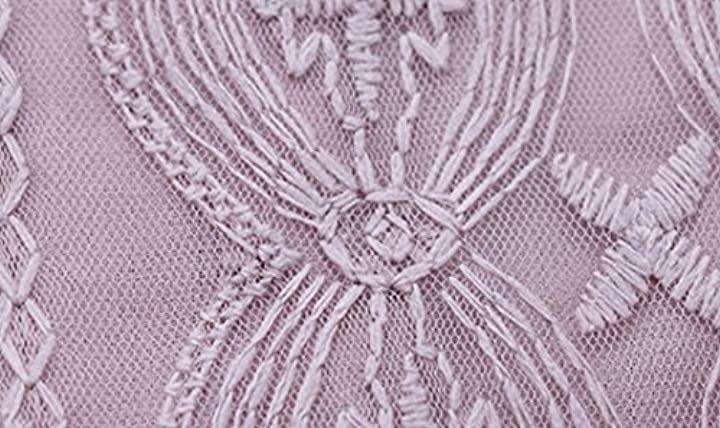 上半身はレースでクラシカルに、スカート部分にはたっぷりのシフォンプリーツで華やかに。