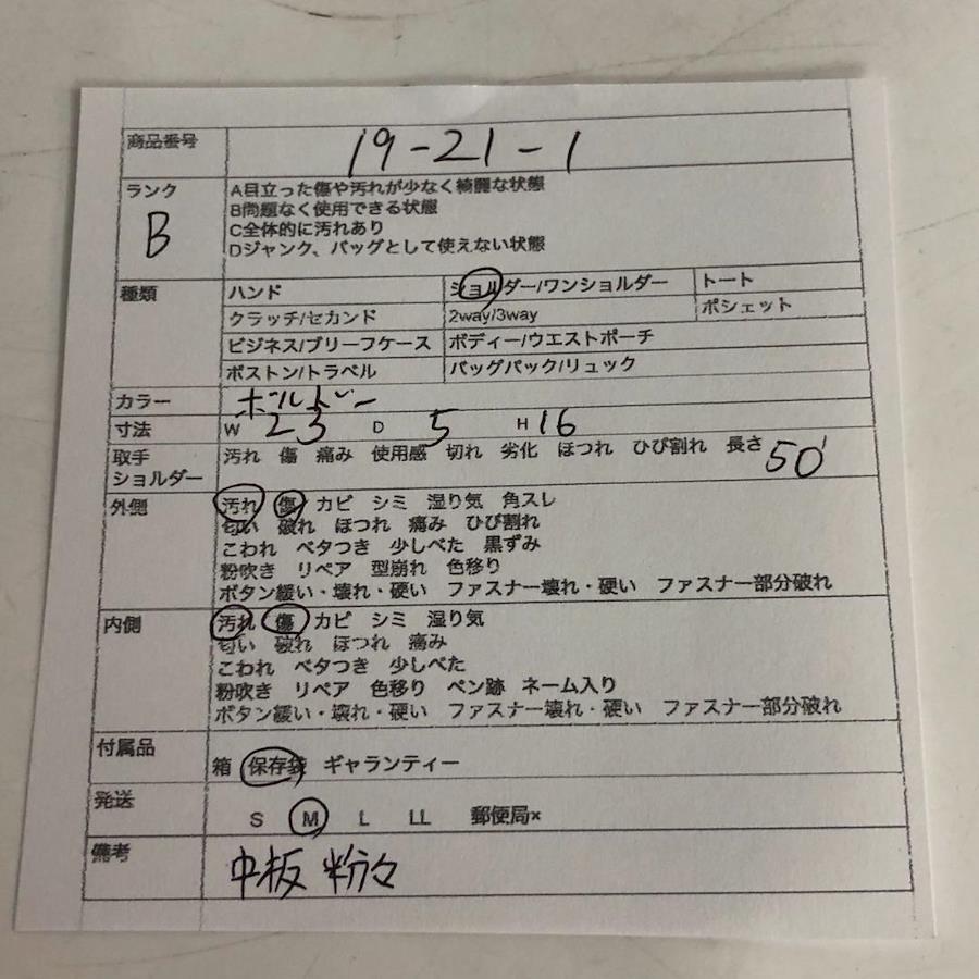 多少の使用感あります。【外側】汚れ、傷が御座います。【内側】汚れ、傷が御座います。【取っ手、ショルダーストラップ】長さ50cm中板が粉々です。