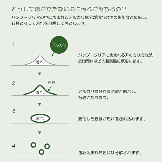 バンブークリアはアルカリ剤(無機物)のため生分解という過程が必要ない、環境にやさしい洗剤です。