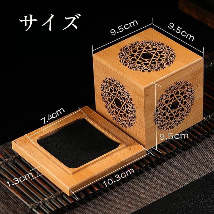 「商品内容」竹製香炉 本体 「カラー」連心柄/氷裂文様/星月文様 「サイズ」外寸 約9.5x9.5x9.5cm(内径 約7.4cm) 「素材」竹製 *お香類は付属しません。