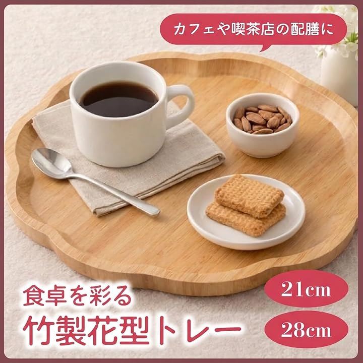 木製プレートならではの温もりがあり、お菓子や飲み物を乗せるだけで、まるで高級カフェのような雰囲気に。