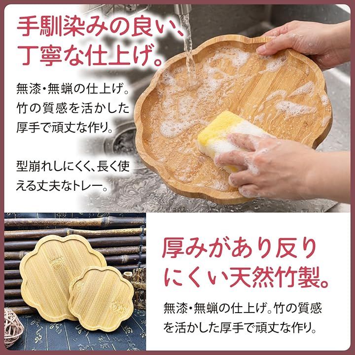 熟練技術で仕上げた花びらの曲線は手馴染みも良く、天然竹の木目が素材の良さを引き立てます。