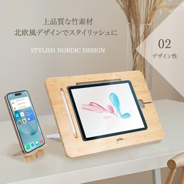 iPadクリエイター向けタブレットスタンド PALTIAの竹製・木製タブレットスタンドは、iPadで絵を描くクリエイターのために設計された専用設計。