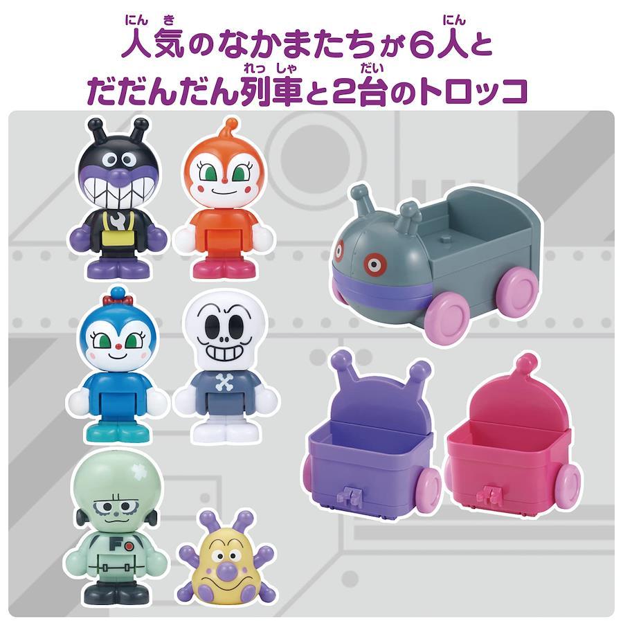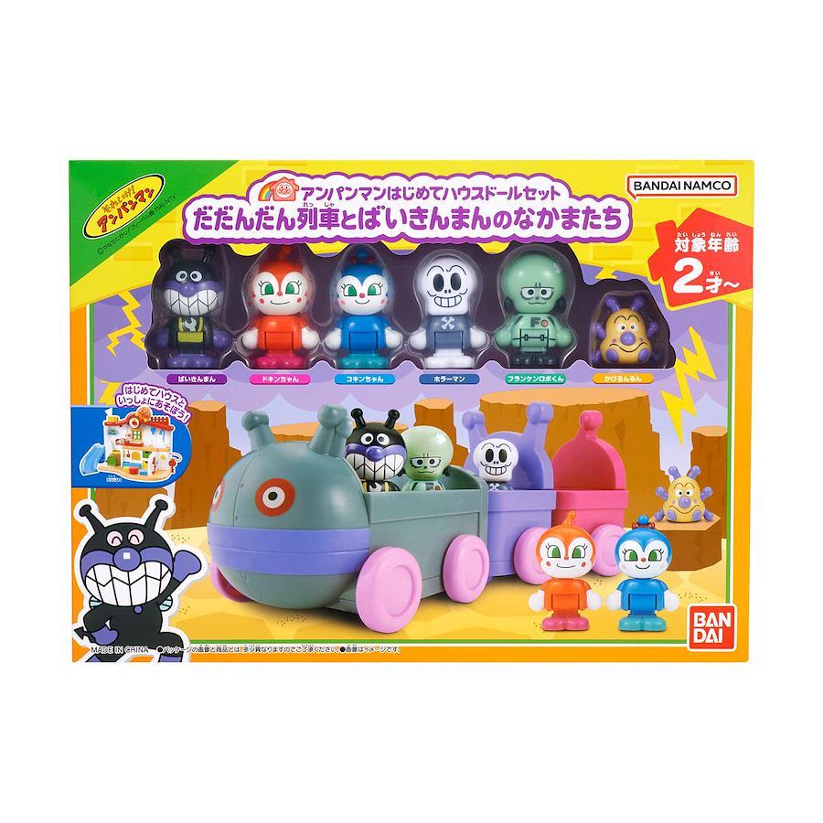 だだんだん列車にばいきんまんとなかまたちを乗せて出発!ころころ動かす手ころがし遊びが楽しめます。だだんだん列車と2台のトロッコは、自由に連結させたり、単体でも遊べます。ドールは別売りの「アンパンマンはじめてハウス」と連動していて、遊びの幅が広がります。[セット内容]・ドール・・・6(ばいきんまん、ドキンちゃん、コキンちゃん、ホラーマン、フランケンロボくん、かびるんるん)・だだんだん列車・・・1・トロッコ・・・2(本商品に付属するもの以外全て別売りです。) アンパンマンはじめてハウスの連動商品、 「アンパンマンはじめてハウスドールセット だだんだん列車とばいきんまんのなかまたち」が登場! ばいきんまんやなかまたちのドールが6体とだだんだん列車、2台のトロッコのセットです。 だだんだん列車にばいきんまんとなかまたちを乗せて出発!ころころ動かす手ころがし遊びが楽しめます。 電池:電池・不要 対象年齢:2才~ (C)やなせたかし/フレーベル館・TMS・NTV