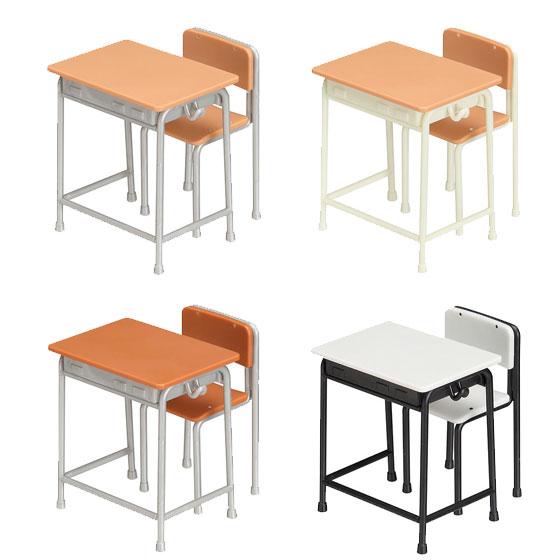 学校の机と椅子を1/12スケールで組み立てキットにて商品化。同スケールの可動フィギュアと組み合わせて遊べます!