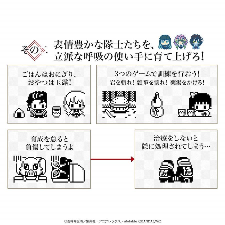 (C)BANDAI,WiZ(C)吾峠呼世晴/集英社・アニプレックス・ufotableLR44電池2本(付属)「たまごっち」から「鬼滅の刃」モデルが登場善逸の羽織をイメージした「きめつたまごっち ぜんいつっちカラー」お世話の仕方によって、様々な呼吸の使い手に成長し、お世話をサボると鬼がせまってくる鬼滅の刃の世界観満載のお世話遊びが楽しい商品