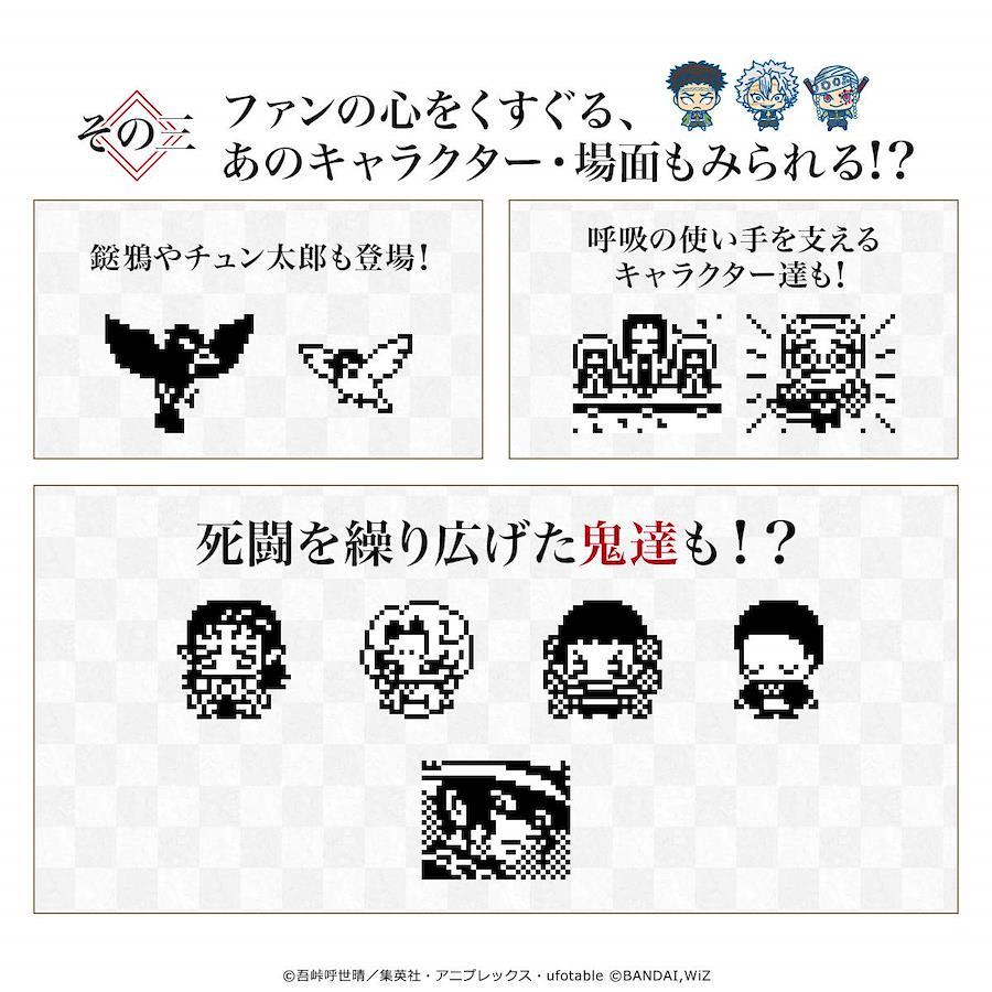 空腹の場合はおにぎり、不機嫌な場合は玉露を与え、3つの訓練(ミニゲーム)で強い隊士に育てましょう!育成を怠ると負傷していまい、治療しないと隠に処理されてしまうので、育成任務を怠らないことが大切です。さらに、鎹烏やチュン太郎、死闘を繰り広げた鬼も登場したりと、ファンには堪らない細かな演出も。鬼滅の刃の世界観満載のきめつたまごっちで、鬼殺隊士を立派な呼吸の使い手に!