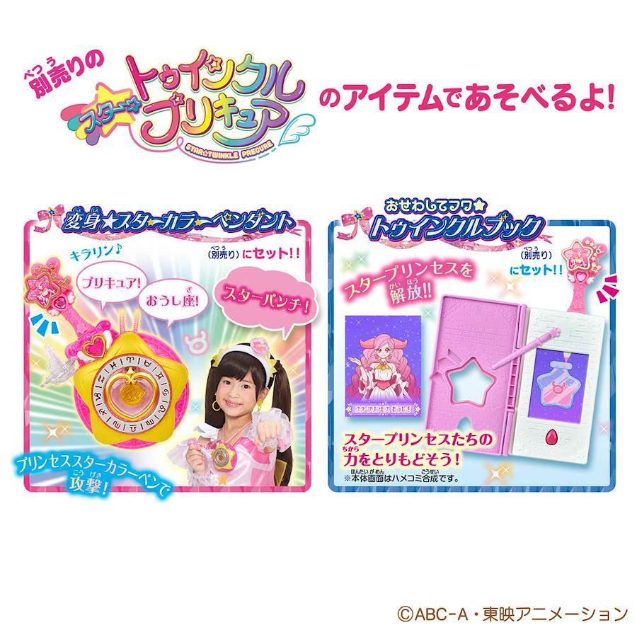 スター☆トゥインクルプリキュアから、プリンセススターカラーペンセット1が登場!プリンセススターカラーペンセット1変身アイテム、液晶アイテムなどであそべる、プリキュアが使う連動アイテム。