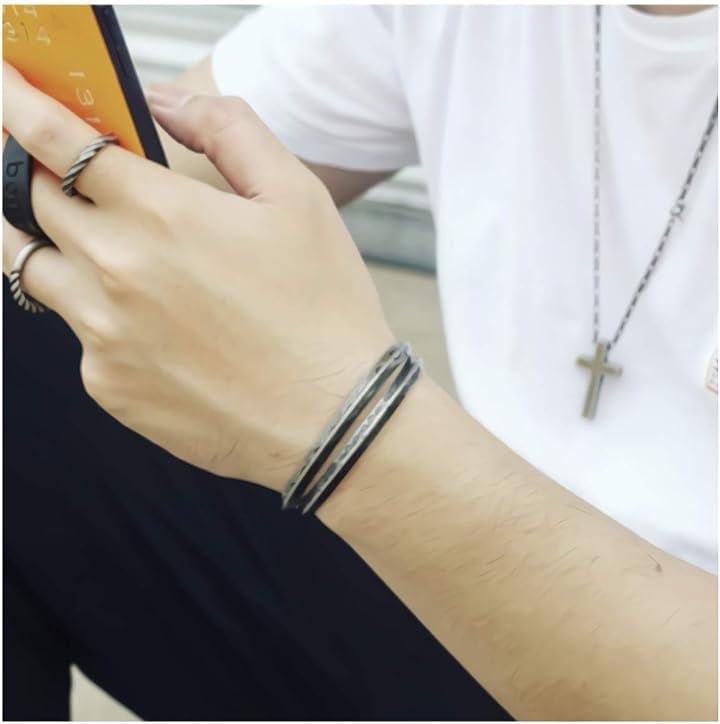 人気の落ち着いたマットシルバー、質感あふれるツヤなしのオトコらしい上品な、メンズブレスレットです。