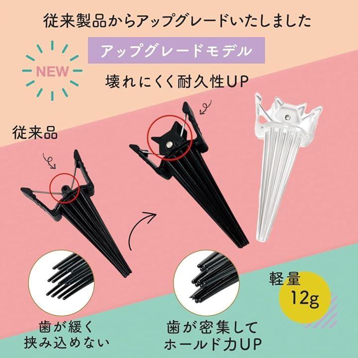 13本の櫛状ピンと3段ボリューム構造で、すべりやすい髪もしっかりホールド。