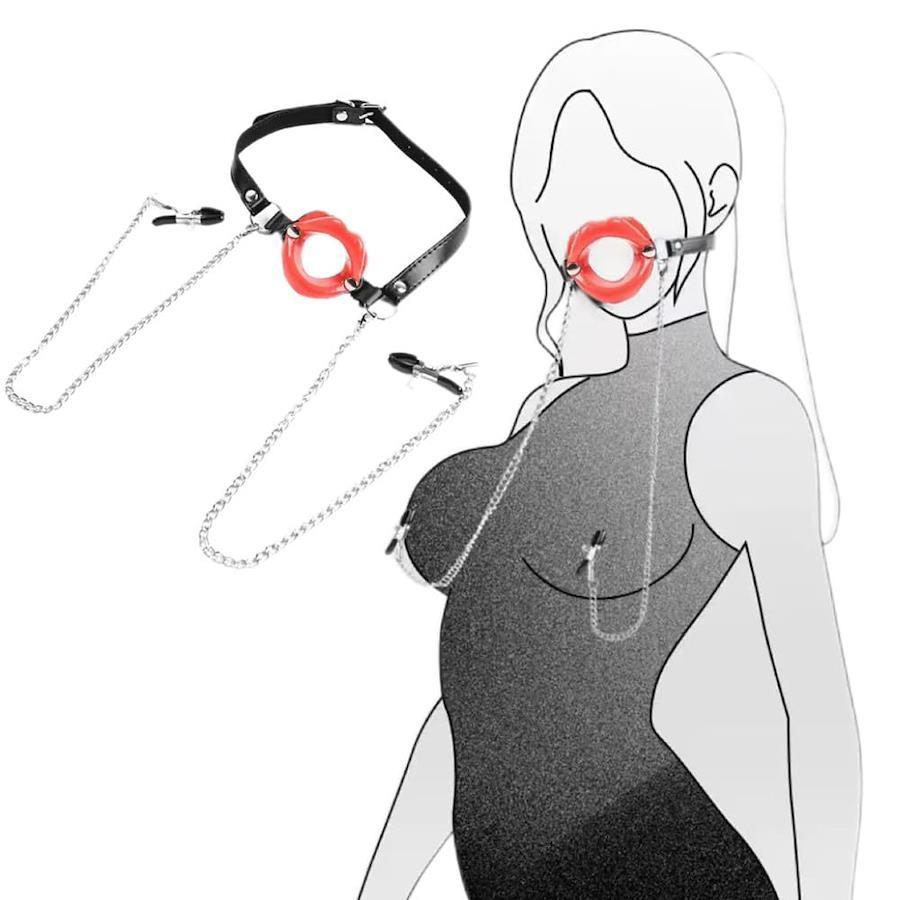 BAOQISHAN smグッズ sm 拘束具 口枷 乳首 クリップ 乳首チェーンアイマスク付き口枷セット 固定用リング付き 女性 アダルトグッズ 男性用 口枷 乳首攻め 乳首責め ボールギャグ さるぐつわ 女 ギャグボール 乳首開発 乳首 クリップ 唇開き 拘束 さるぐつわ 開口器 あだるとグッズ 大人のおもちゃ (レッド)
