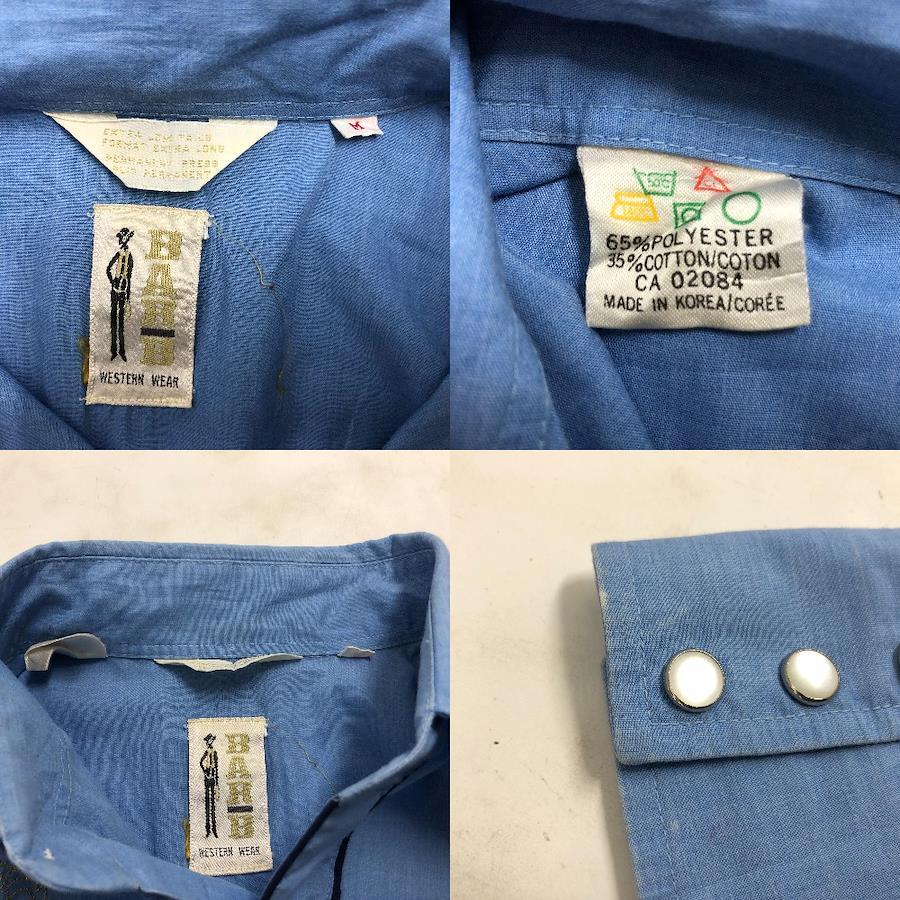 【管理番号】02w13030【対象】メンズ【カラー】ライトブルー【モデル】長袖ウエスタンシャツ【生産国】韓国【サイズ】ケース:約mm表記サイズ:EUM肩幅:約43cm着丈:約77cm身幅:約52cm袖丈:約59cm【素材】1389713791【付属品】なし■コンディション・状態【状態ランク】B首周りや袖口、ボタン周辺などに色褪せや汚れが見られます。