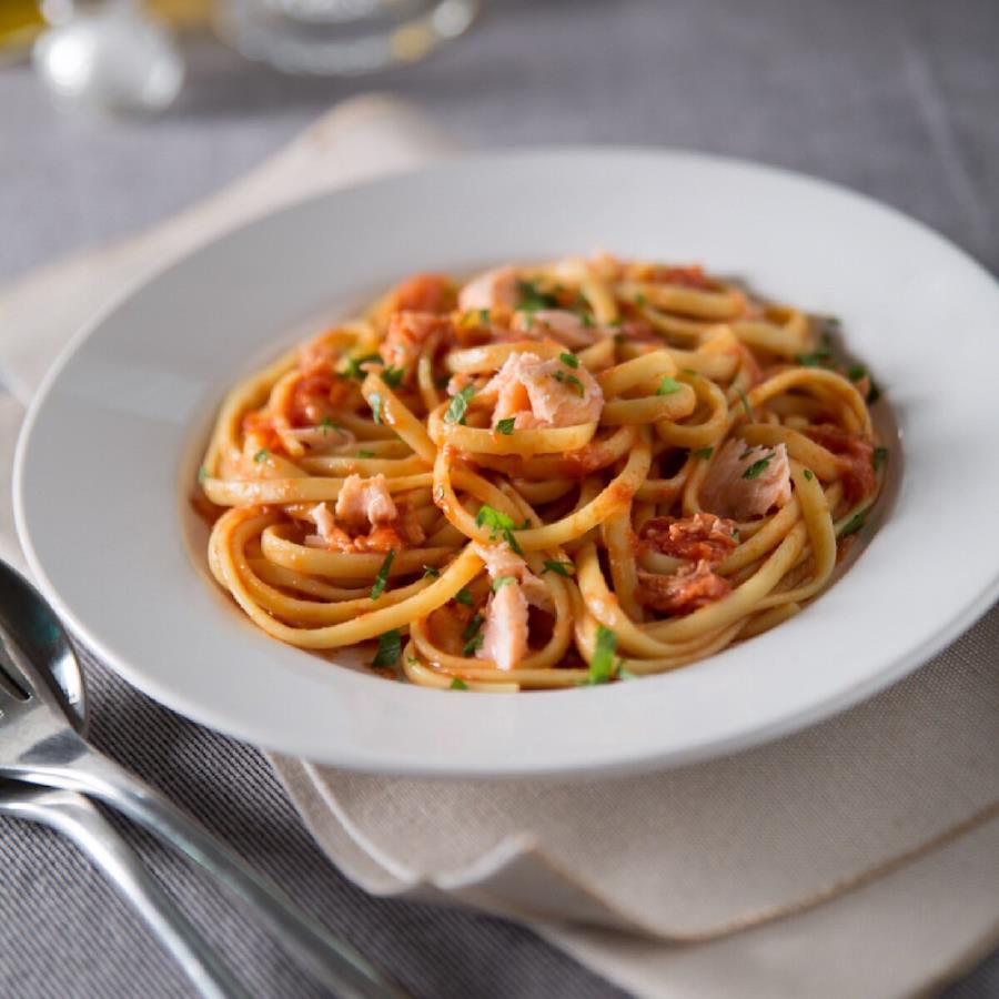 バヴェッテとは別名リングイネとも呼ばれ、ジェノベーゼソースで有名なイタリアのジェノヴァを代表するロングパスタです。平にした形状はスパゲッティとはまた違う食感をお楽しみいただけます。ジェノベーゼソースとの相性はもちろん、魚介類のソースともよく合います。
