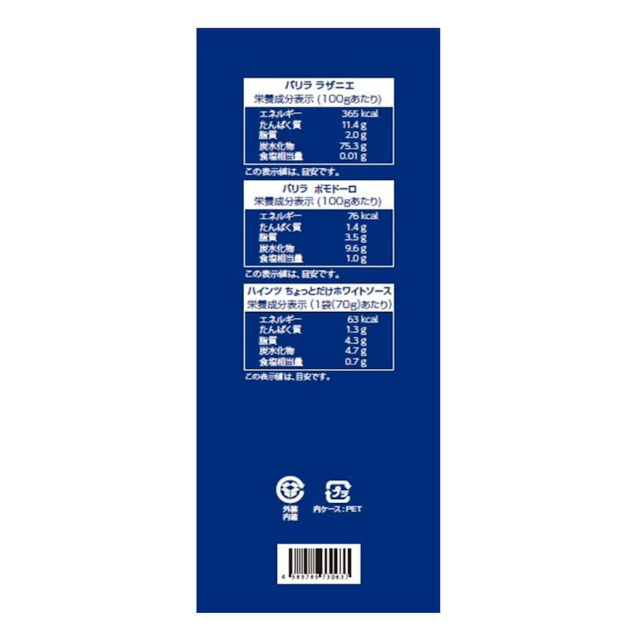 セット内容:バリラ ラザ二エ(250g)?バリラ ポモドーロソース(400g)ハインツ ちょっとだけホワイトソース(70g ? 3袋入り)アルミトレイ(3枚)※サイズ:約225×220×45mm? ?※耐熱温度:約660℃