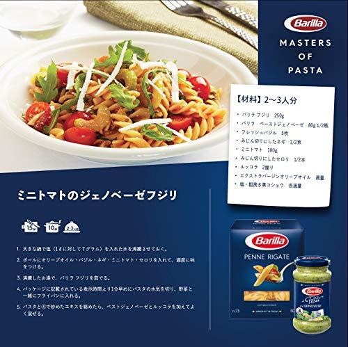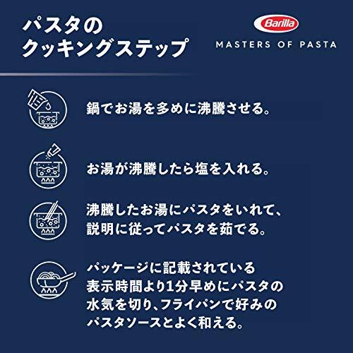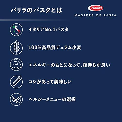 Barilla(バリラ)は本場イタリアだけでなく、ヨーロッパ各地やアメリカで最も支持されているパスタブランドです。バリラパスタの特徴は「アルデンテの食感が長く続く」ことです。そして徹底された品質管理と独自の乾燥方法、つるつるとした表面を作り出すテフロンダイス製法により、安定したブレの無い品質を実現し、どなたでも失敗無く本格的なアルデンテパスタをお楽しみいただけます。