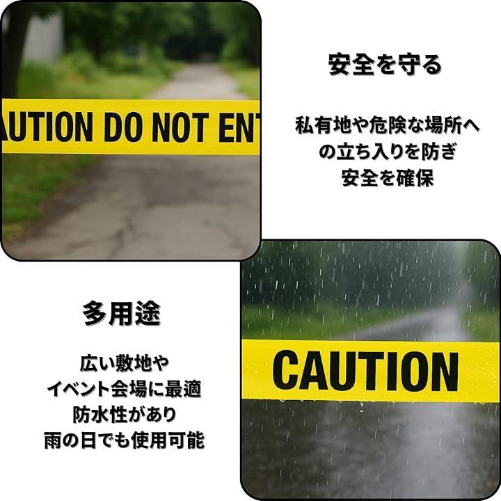「安全を守る」このバリケードテープは、私有地や危険な場所への立ち入りを防ぎ、安全を確保します。