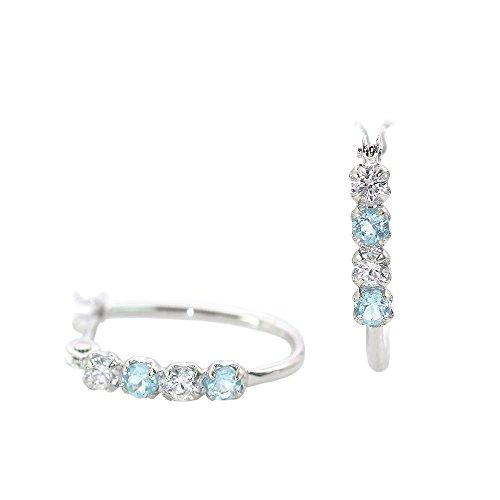[Barzaz] Hoop Earrings Women's Blue Topaz K14 White Gold 14K 14K Gold November Birthstone