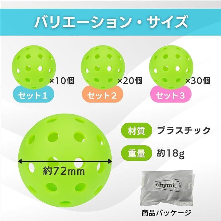 バリエーションは、10個セット・20個セット・30個セットと大量セットであり、トスバッティング練習でも面倒な球拾いの回数が少なくなります。