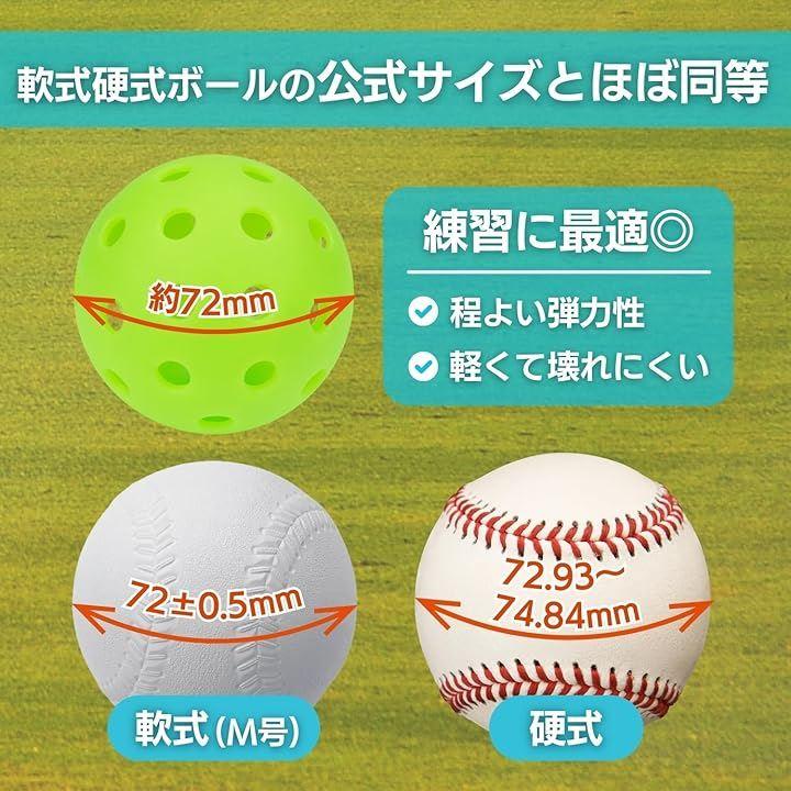室内・野外でご使用いただけますのでバッティング練習や試合前の打撃練習にぴったり。軟式硬式ボールの公認サイズとほぼ同等であり、大人も少年も実戦に近い状況で練習可能です。「商品のポイント」壊れにくい軽量PE素材を採用。使いやすく程良い弾力性があるボールとなっています。