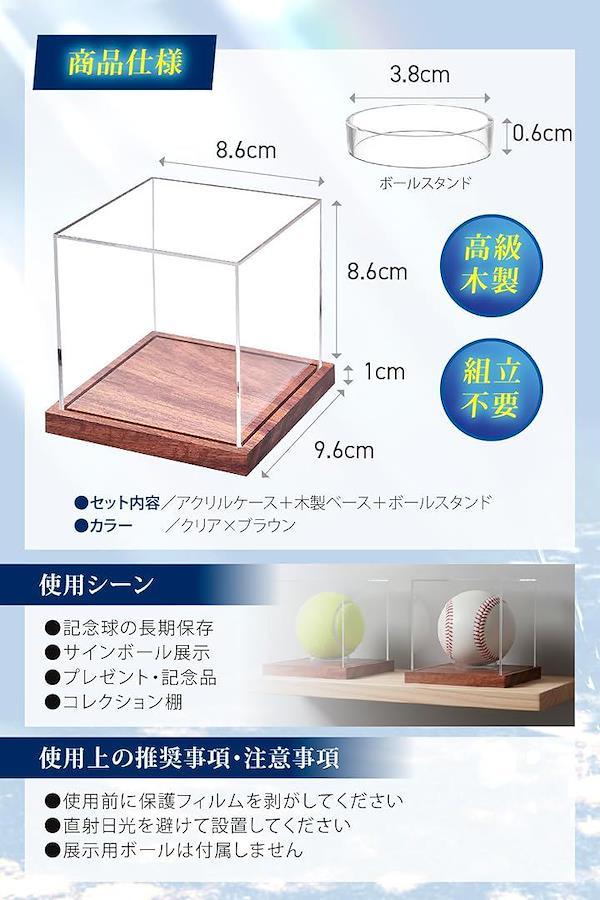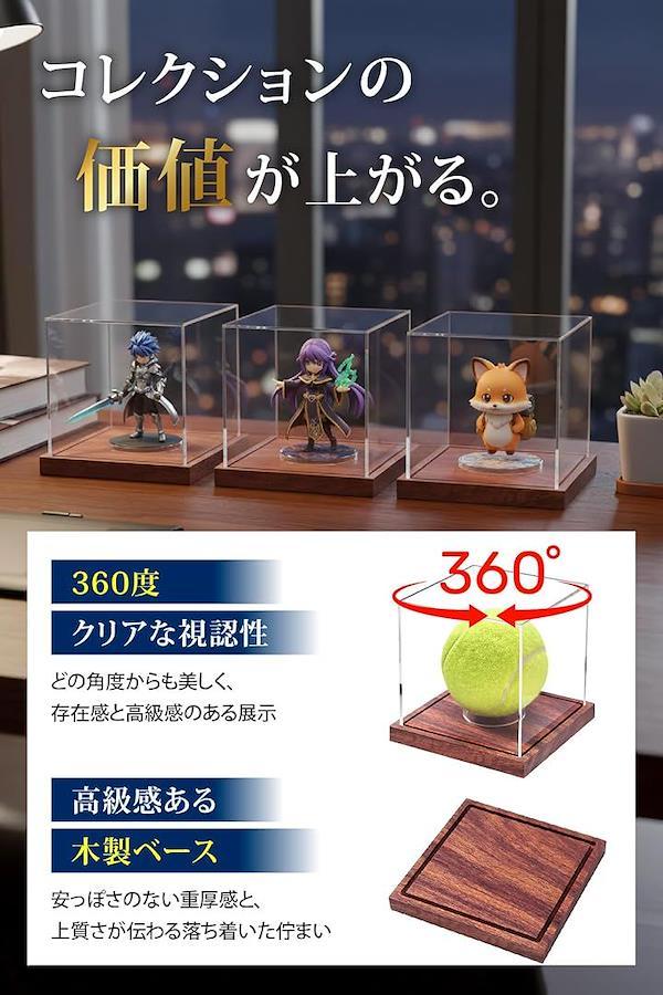 「商品仕様」 アクリルケース+木製ベース+ボールスタンド/サイズ約8.6cm角/カラー:クリアxブラウン