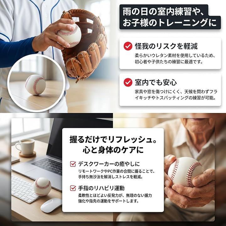「柔らかさで安心」この野球ウレタンボールセットは、雨の日でも室内で安全に練習できる理想的なアイテムです。