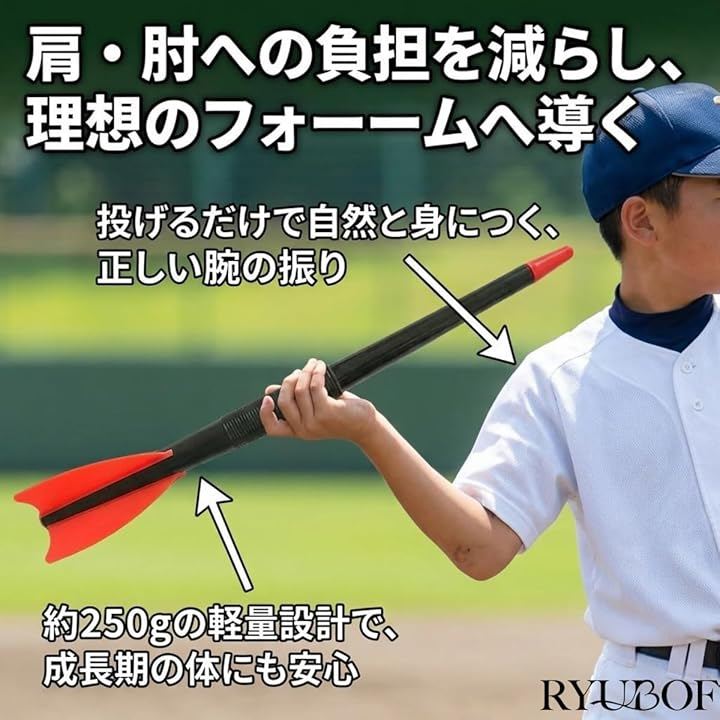 野球や槍投げなどの投球練習に活用できる軽量タイプで、肩や肘への負担を抑えながら、スムーズなフォーム習得をサポートします。