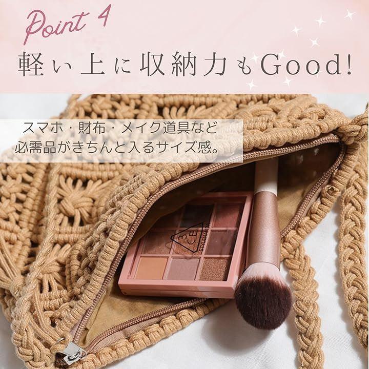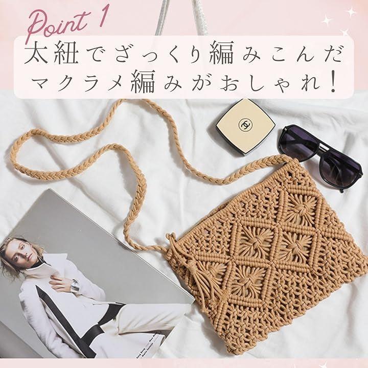 太紐でざっくり編みこんだマクラメ編みがおしゃれなショルダーバッグです。
