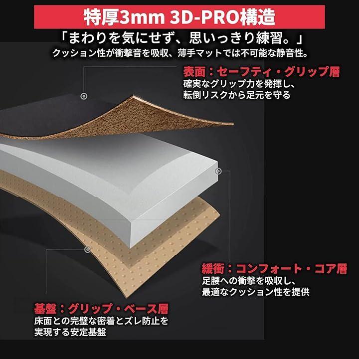 1. 静音性能。特厚3mm 3D-PRO構造を採用 一般的な薄手の練習マットと違い、本製品は3mmの特厚設計で3層構造を採用しているため、ドリブルの衝撃音をしっかり吸収します。