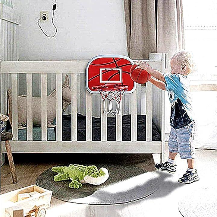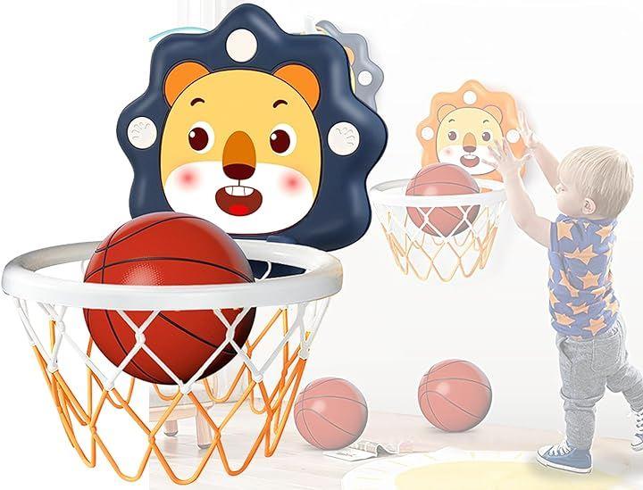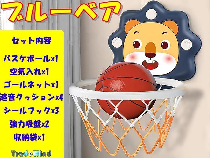 「セット内容」バスケットゴール、ゴールネット、ボール、エアポンプ、シールタイプフックx2、吊り下げ用吸盤x2、傷騒音防止クッションx4