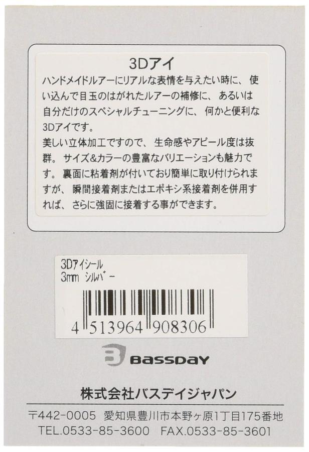 ハンドメイドルアーにリアルな表情を与えたい時に、使い込んで目玉のはがれたルアーの補修に、あるいは自分だけのスペシャルチューニングに、何かと便利な3Dアイです。美しい立体加工ですので、生命感やアピール度は抜群。サイズ&カラーの豊富なバリエーションも魅力です。