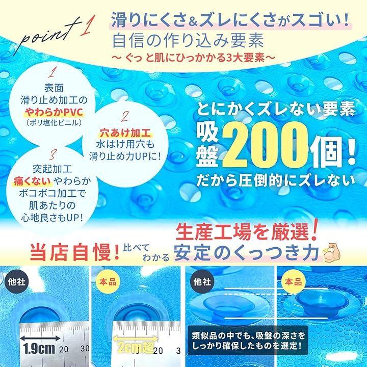 キュッと止まる、ピタッとズレない、お風呂での転倒防止に役立つ滑り止め浴槽マット