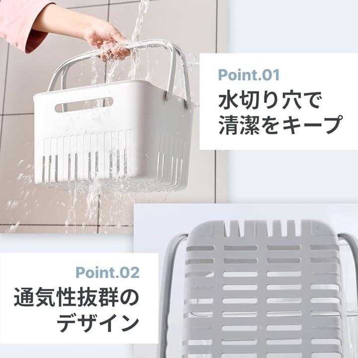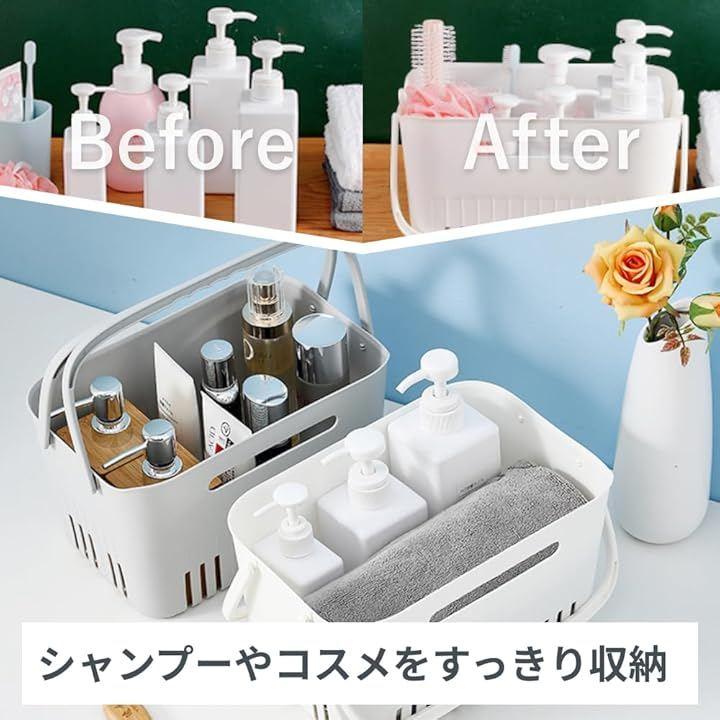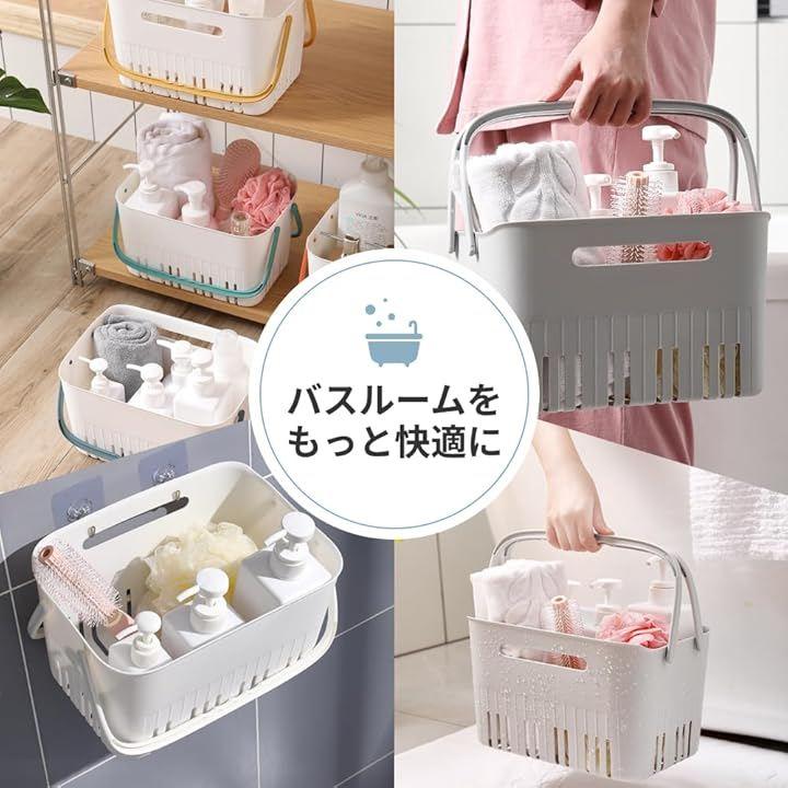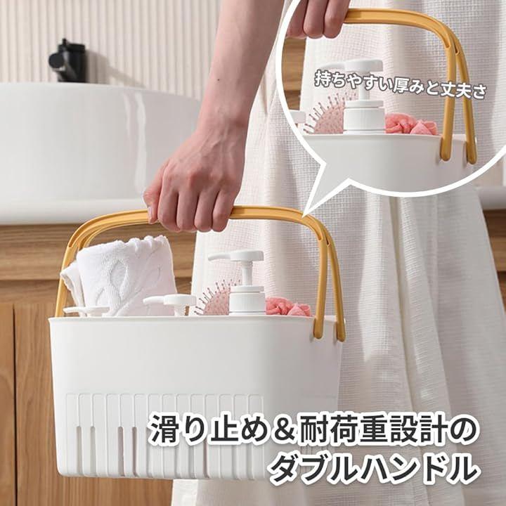 バスルームや温泉で活躍するこの多機能収納バスケットは、シャンプーやバス用品、コスメを効率よく整理するのに便利です。