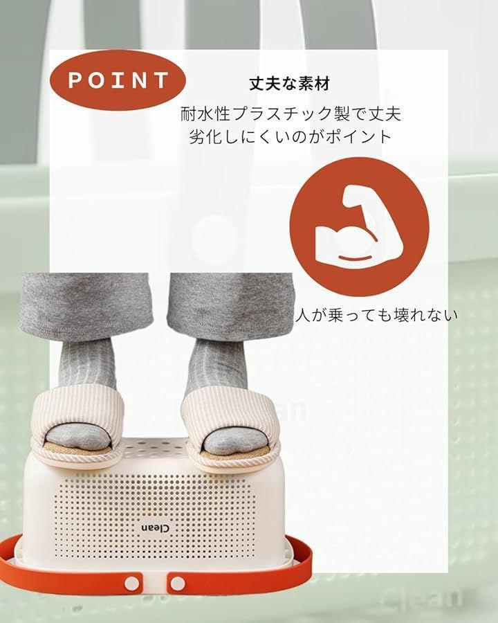 「丈夫な素材」水回りでの使用に適した、耐水素材のプラスチック製で丈夫。割れにくく、水がかかる場所での使用でも劣化しにくいのがポイント。