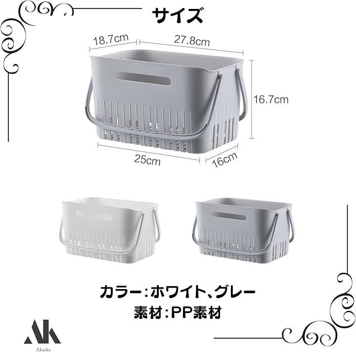 「商品スペック」サイズ:27.8x18.7x16.7cm、カラー:ホワイト、グレー、素材:PP素材