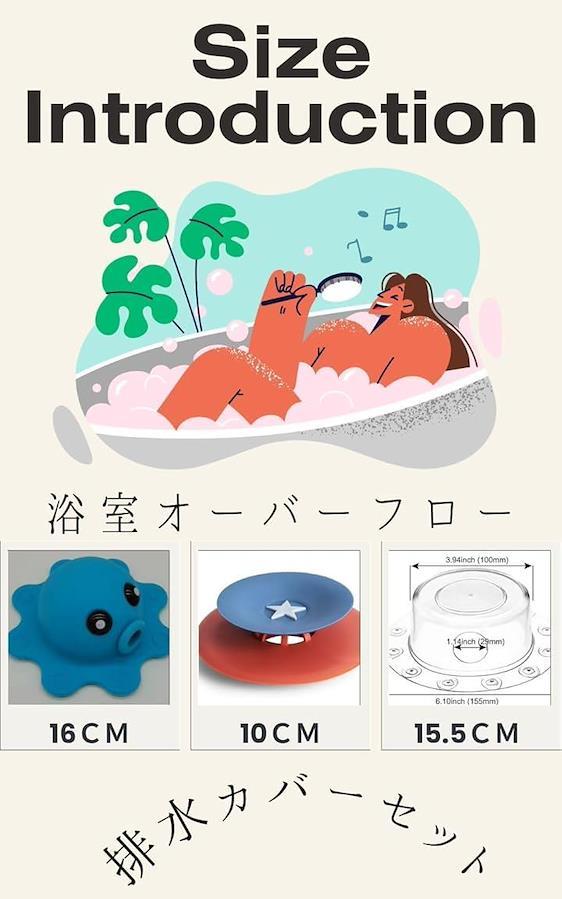 「内容」 お風呂オーバーフロー 1個 素材:シリコン + 排水口カバー 3個 素材:シリコン