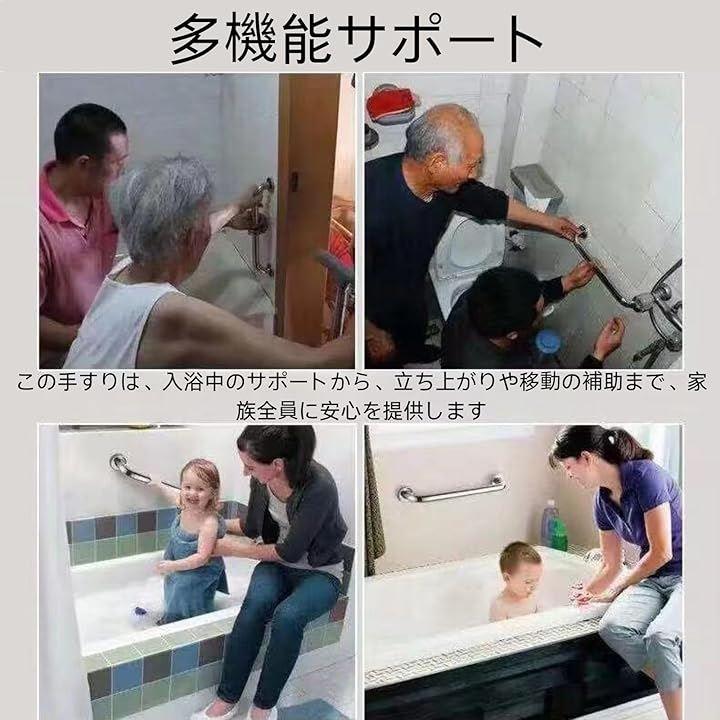 多機能サポート:この手すりは、入浴中のサポートから、立ち上がりや移動の補助まで、家族全員に安心を提供します。