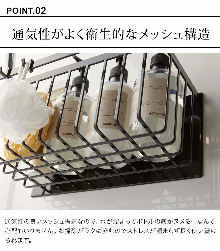 【マグネットバスルームバスケット】マグネットで浴室の壁面にピタッと貼り付け!設置簡単◎towerのマグネットバスルームバスケット。奥行、深さがしっかりあるバスケットでボトル類や掃除道具、おもちゃの収納にもぴったり。水がたまらない通気性の良いデザインなので衛生的に収納できるのもポイントです。