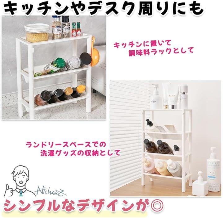 「キッチンやデスク周りにもおすすめ」バスルームだけでなく、キッチンに置いて調味料ラックとして、ランドリースペースでの洗濯グッズの収納として、そしてデスク周りでの利用にも。