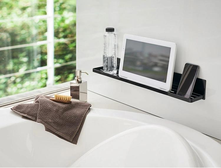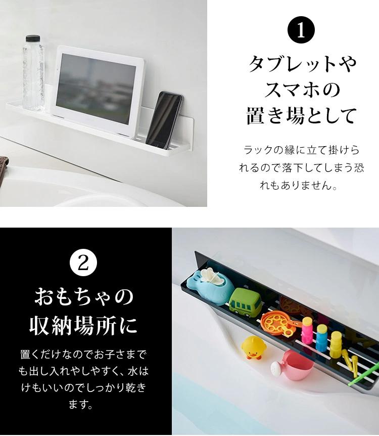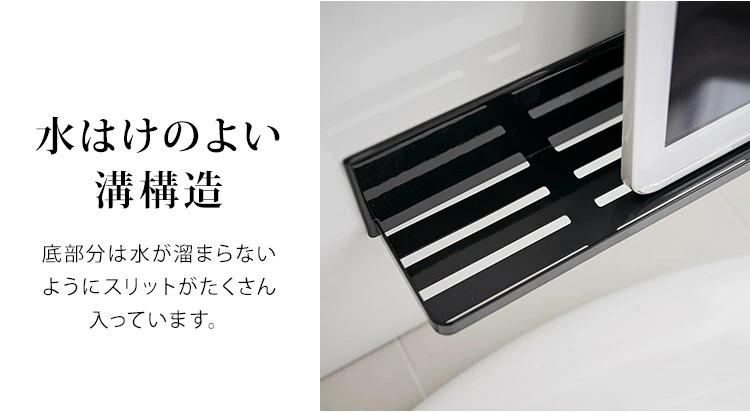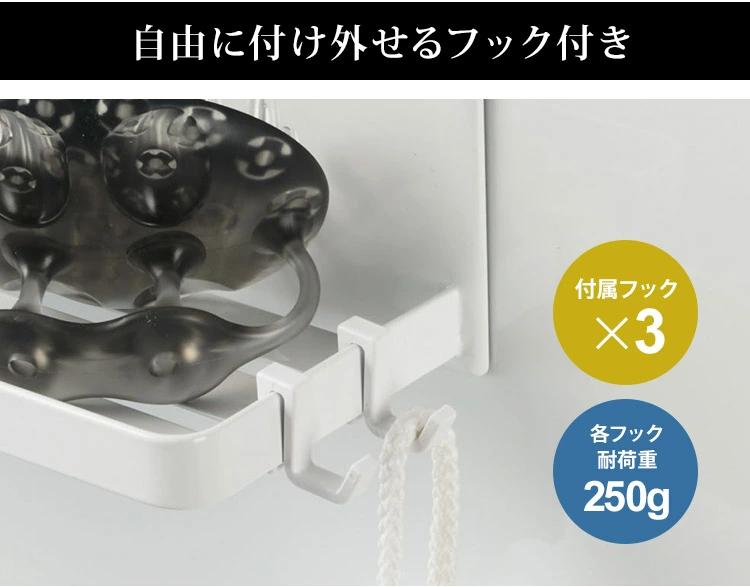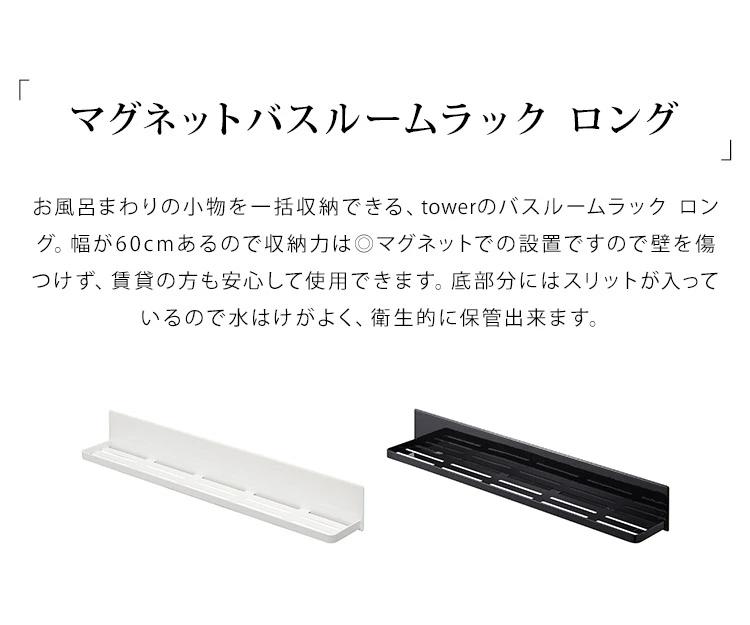 【マグネットバスルームラック ロング】お風呂まわりの小物を一括収納できる、towerのバスルームラック ロング。幅が60cmあるので収納力は◎マグネットでの設置ですので壁を傷つけず、賃貸の方も安心して使用できます。底部分にはスリットが入っているので水はけがよく、衛生的に保管出来ます。
