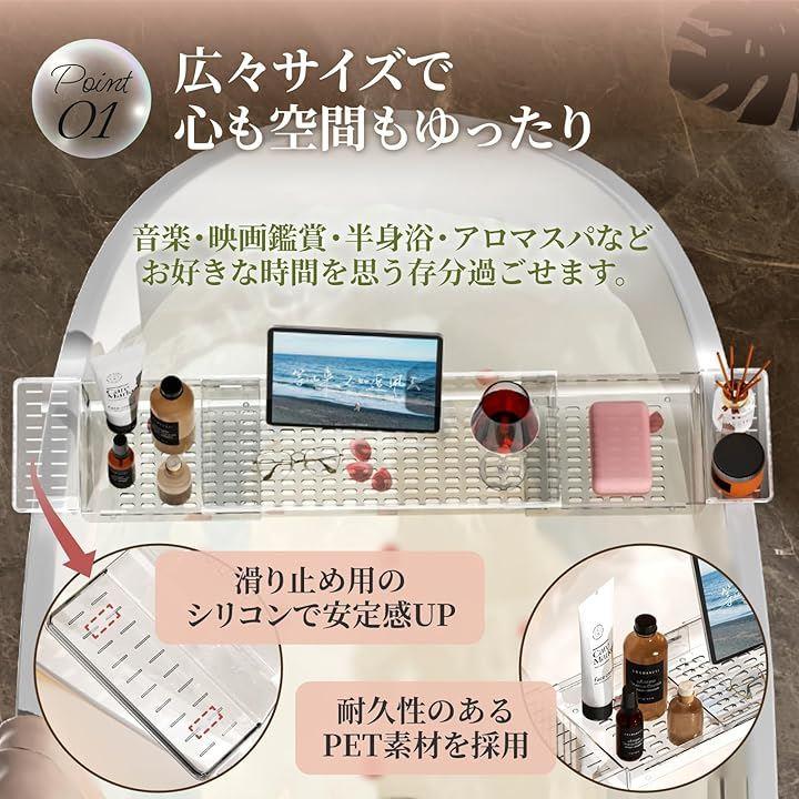 多機能設計: タブレットスタンド機能付きで、バスタイム中の動画視聴や読書に便利です